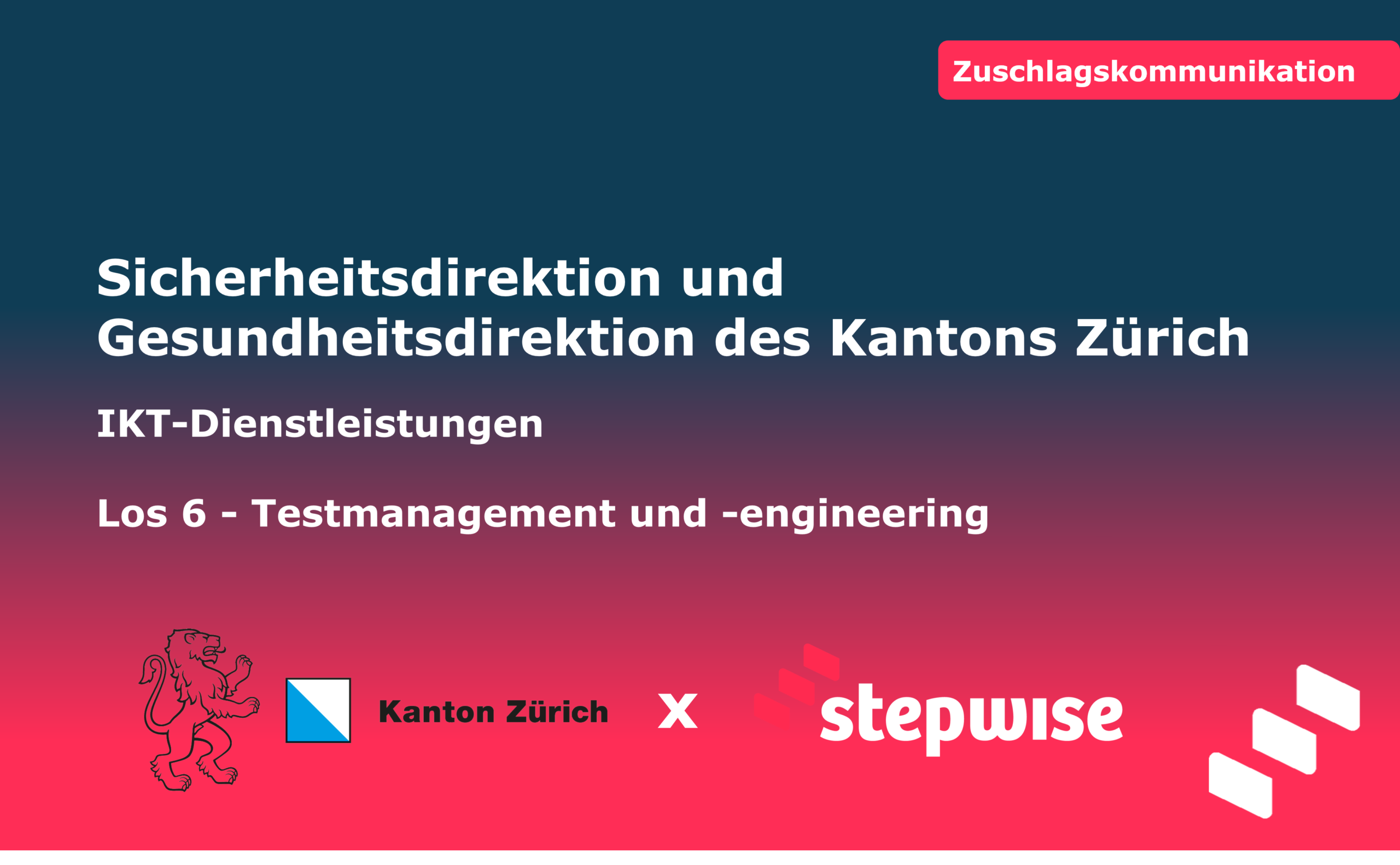 Wir freuen uns sehr, im Rahmen der WTO-Ausschreibung für IKT-Dienstleistungen der Sicherheits- und Gesundheitsdirektion des Kantons Zürich den Zuschlag für Los 6 – Testmanagement und -engineering erhalten zu haben.